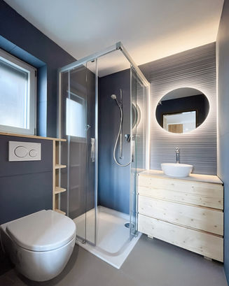 Die neue Grundrissorganisation und Möblierung nutzen die begrenzte Fläche effizient und schaffen ausreichend Platz für zwei Feriengäste. Die reduzierte Materialwahl, sowie eine funktionale Ausstattung ermöglichen eine zeitgemässe Nutzung.
